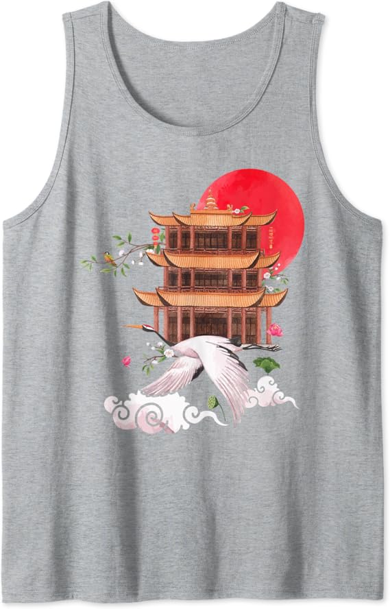 Amazon Com Vintage Japanese Pagoda Temple With Crane Bird Art Tank Top Clothing Shoes Jewelry